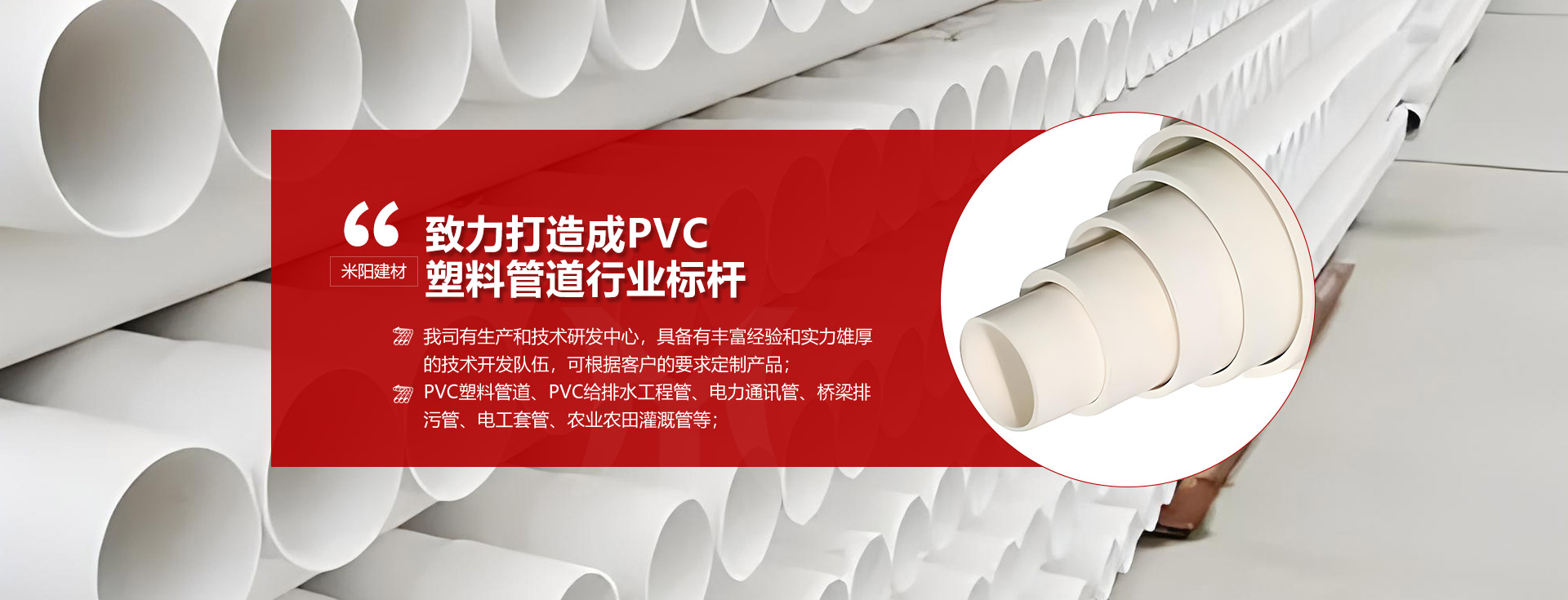PVC系列管道一站式采購基地 米陽建材多年的品質追求 值得您信賴的品牌One stop procurement base